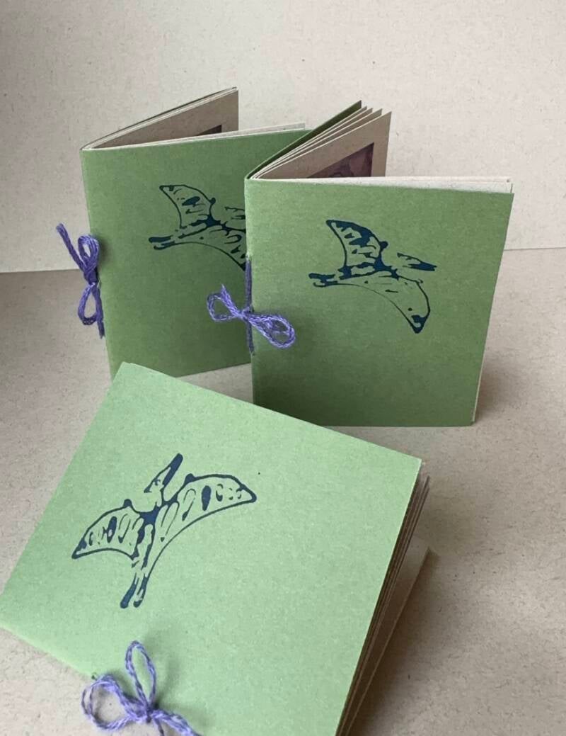 These explorations of life, I later digitally scanned and printed onto card, collating them into a zine format. Featuring a pterodactyl on the front (a figment from a reassuring dream) with coquette bows as binding, this zine is illusionary and dreamlike.